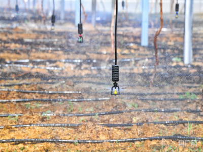 袁中社区一处农业大棚内使用水肥一体化无人喷灌系统。(央广网发 蜀山区委宣传部供图)