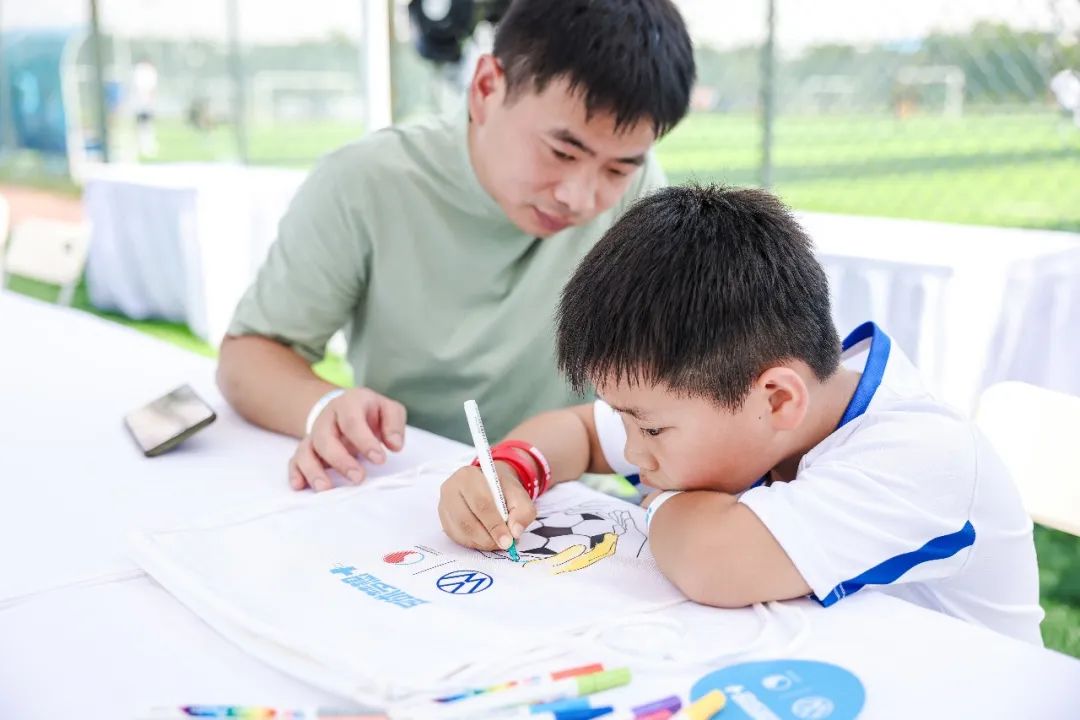 在持续了两天的“足球梦想+”——2022大众汽车足球公益日活动中,有多达120个家庭以足球之名留下了美好的夏日终曲。无论是奔跑于场内的孩子们,还是驻足关注、又参与到趣味游戏中的家长们,都在长达三个小时的活动中全情投入。而在自身沉浸于足球之乐的同时,这120个家庭亦向甘肃省武威市古浪县黄花滩生态移民区富民小学送上了关切与温暖——一个个亲手绘制的、沉甸甸的足球装备包,就是最具生命力的梦想传递。