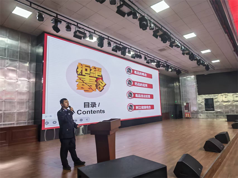 讲座中,肖立阳警官围绕四大核心内容展开宣讲:一是明晰毒品概念,精准界定传统、合成及伪装毒品范畴,揭露“笑气”“彩虹烟”等新型毒品的隐蔽性;二是解读药品滥用危害,结合真实案例讲解常见药品滥用的严重后果,强调遵医嘱用药的重要性;三是普及禁毒法律法规,通过典型违法案例,阐明吸毒、贩毒的法律责任与社会危害;四是倡导健康生活观念,引导学生培养积极兴趣爱好,远离高危场所,坚决抵制毒品诱惑。