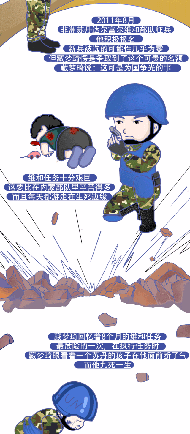 藏梦琦,男,1993年5月出生,个体宠物店店长。他有着不同常人的传奇经历:17岁,去内蒙古参军;18岁,远赴非洲苏丹达尔富尔参加维和,作为献给自己的成人礼;23岁,到山区义务支教;24岁,他与好友成立“爱心小队”,开展长期的支教活动,直至今日。2019年6月,藏梦琦入选“中国好人榜”。