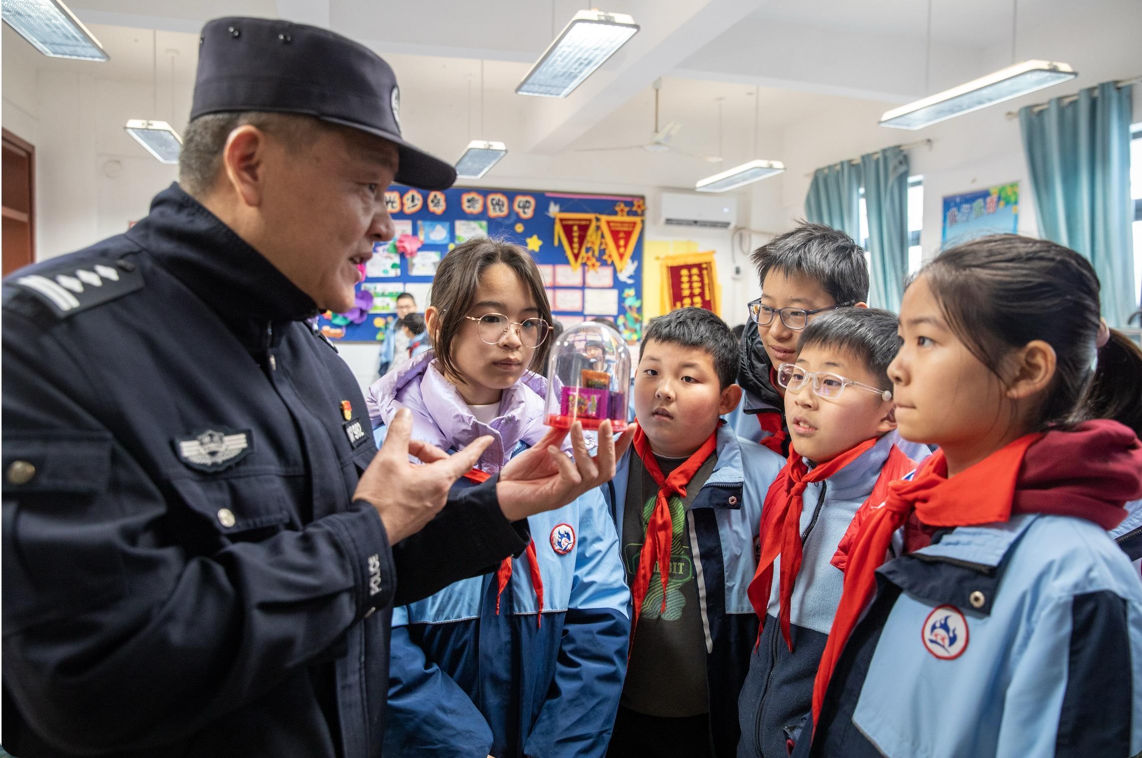 1月5日,在中国人民警察节来临之际,湖北省襄阳市公安局襄城区分局檀溪派出所民警走进当地小学开展禁毒宣传活动。
