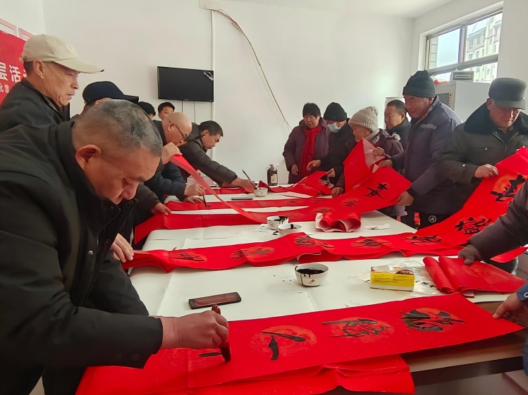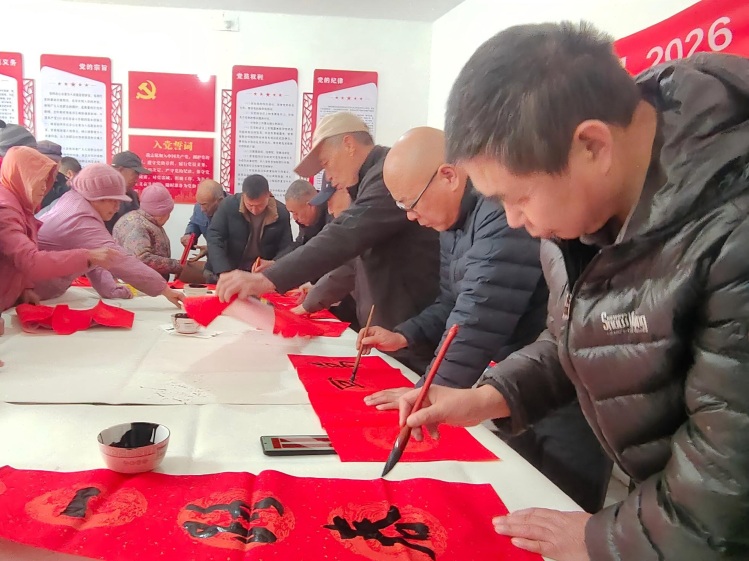 此次活动由博野县文联、县文旅局联合主办,县书法家美术家协会、县作家协会、县文化馆承办,20余名书法志愿者现场挥毫泼墨,将新春祝福凝于笔端,为村民送上专属“文化年货”。活动现场,红彤彤的春联纸格外喜庆,村委会大院里的临时书写台上,笔墨纸砚齐备,书法家们专注创作,一副副融入马年吉祥寓意与乡村发展内涵的春联接连诞生。