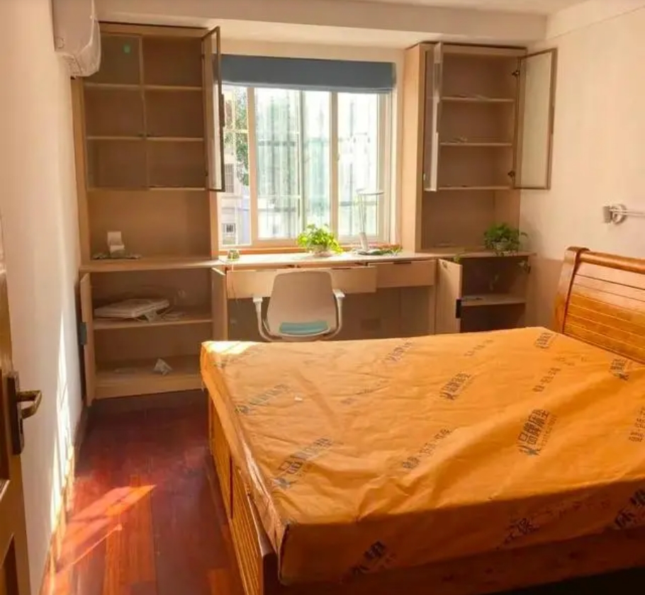 书屋设计团队采取“一户一方案”的“定制”原则,通过入户走访,了解小蕾父女的实际生活需求。团队从优化布局、改善采光、空间利用三方面入手,在屋内居中打造了宽约1.5米的上下床铺,将原有的一居室户型加以隔断,构建出父女各自的私人空间;在上下床铺隔断处安置玻璃窗,增加屋内采光;同时从“顶面、墙面、地面”三面同步作业,为小蕾配备了床、写字台、衣柜、台灯、书架等生活与学习用品。