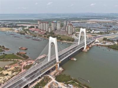 3月31日,地处钦江入海口的广西钦州平陆运河沙井钦江大桥建成通车。至此,平陆运河规划的27座跨线桥梁中,已有25座桥梁建成通车,全线桥梁工程即将收官。图为3月31日拍摄的建成通车的平陆运河沙井钦江大桥。
