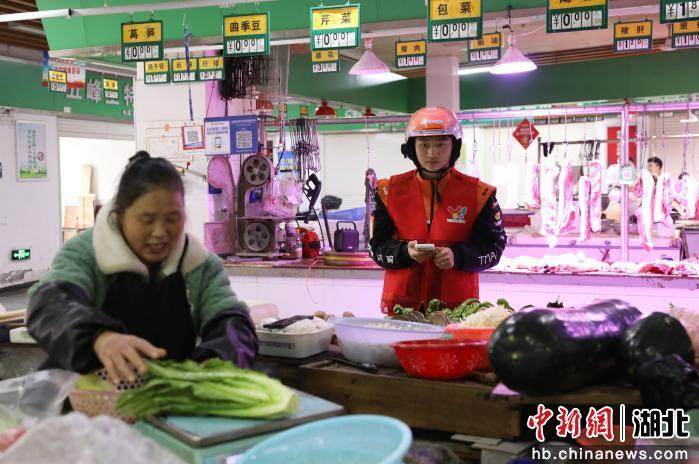 3月4日下午3时40分,22岁的“南骑先锋”青年志愿服务队队员、淘宝闪购小哥甄梦军一路小跑,来到西陵区八零九菜场。在市场转了一圈后,他在一个摊位前停下来,买了豆腐、玉米、番茄等小菜。