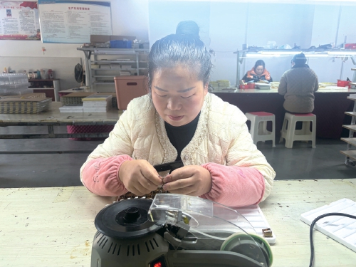 在和顺家园社区的电子加工厂里,43岁的范辉意正专注地为变压器贴挡墙。她的动作干净利落——取件、对位、按压,三秒钟完成一道工序。“贴好一个挣一分钱,手脚勤快点,一个月能有2000元到3000元收入。”范辉意介绍,这份工作,为她的人生带来了转机,“以前在山上除了种地没别的出路,试着养鸡也失败了,那时真觉得生活没有希望。”如今,她的生活变了样:一家四口住进了110平方米的新房,孩子上学,只隔一条马路。这样安稳踏实的日子,就是她曾经不敢奢望的。