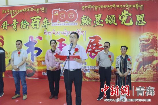 何春德为尖扎县庆祝中国共产党成立100周年书画展开幕式作了致辞。