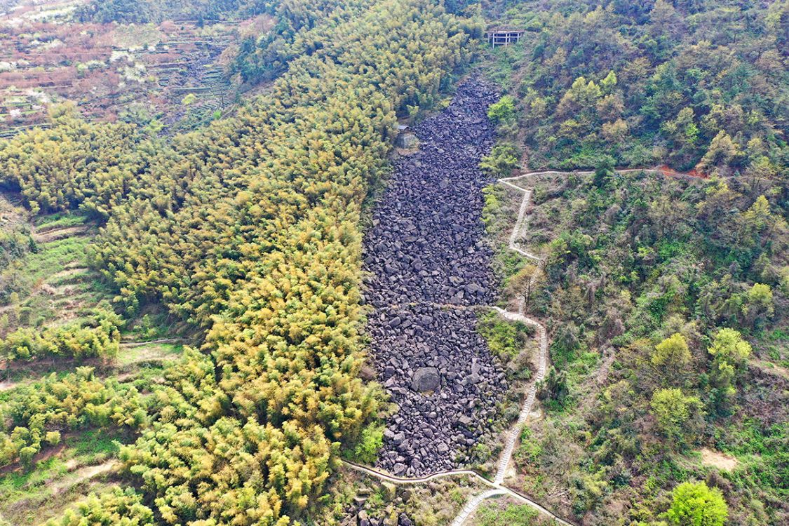 乱石滚滚如河流,不生草木,亦可谓之石头河。