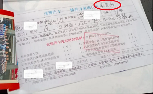 当天中午,阳光重庆便收到黎先生的反馈:“投诉之前与茂腾汽车老店和2号店都沟通了,都不接受客户指定机油。现在收到茂腾汽车的电话,又说可以按确认单上注明的机油品牌为我提供保养服务,但我还是担心在后期的保养中还会被套路。”