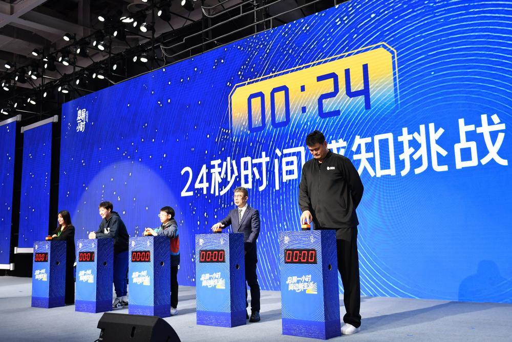 11月23日,姚明和现场嘉宾进行“24秒时间感知”挑战。新华社记者 陈振海 摄